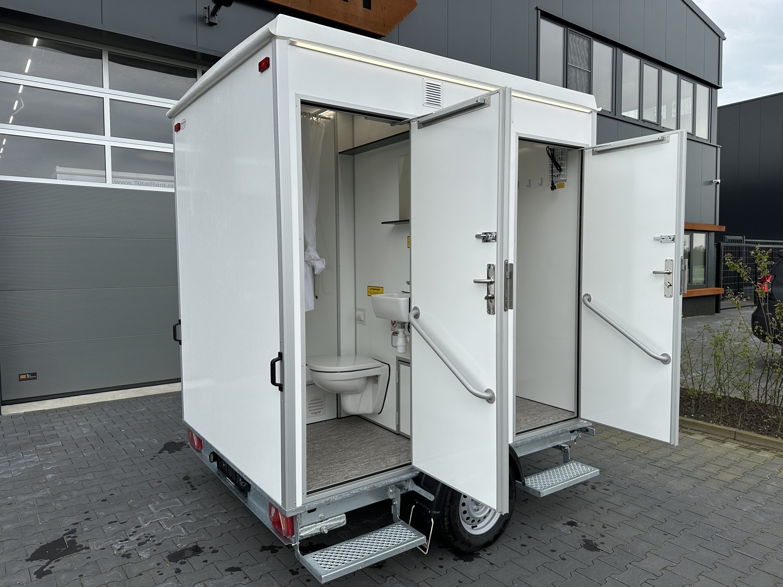 Dit mobiele toilet verkopen wij aan organisatoren van evenementen, verhuurbedrijven en party-/cateringbedrijven en aan aannemers die hun medewerkers op de bouwplaats comfortabele sanitaire voorzieningen willen bieden. Het mobiele toilet is van alle gemakken voorzien en gemakkelijk schoon te maken.